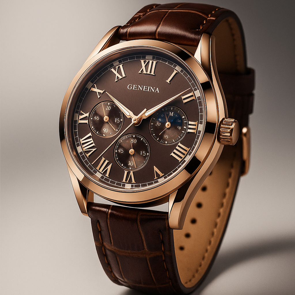 The Everon is a study in timeless sophistication, designed for the modern man who commands both presence and precision. Its robust alloy case offers enduring strength, while the Roman numeral dial evokes a sense of classical refinement. A genuine leather strap completes the silhouette, blending comfort with polished elegance across every occasion.