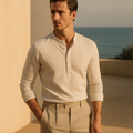 From seaside strolls to relaxed evenings in the city, the Ardenze Cotton-Linen Beach Henley Shirt embodies quiet confidence and breezy sophistication. Crafted from a lightweight blend of cotton and linen, it brings natural breathability and texture to your warm-weather wardrobe.
